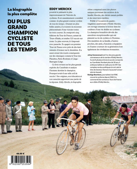 Ce livre revient sur les plus grands exploits du Cannibale et analyse l'homme derrière le champion. Pourquoi avait-il une telle soif de succès ? Ses origines, son éducation et son caractère apportent une partie de la réponse. Eddy Merckx, la biographie ultime comprend aussi des photos uniques provenant des archives de la famille Merckx, des clichés jamais publiés et des interviews inédites.