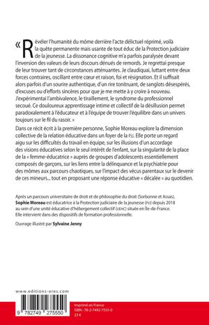 À l’heure de l’abrogation hautement symbolique des ordonnances de 1945, l’auteur interroge les impacts de la réforme de la justice des mineurs avec l’avènement du Code de justice pénale des mineurs (cjpm) et ses répercussions sur la relation éducative. Elle aborde de front la question de savoir comment travailler en post-sentenciel, avec des mineurs officiellement reconnus coupables par la justice. En explorant la dimension forcément collective de la relation éducative dans un foyer de la pjj, elle porte un regard aigu sur les difficultés du travail en équipe, sur les illusions d’un accordage des visions éducatives selon le seul intérêt de l’enfant, sur la singularité de la place de la « femme éducatrice » dans un environnement essentiellement masculin, sur les liens entre la délinquance et la psychiatrie concernant des mômes aux vécus chaotiques, sur l’impact des vécus parentaux sur le devenir de ces mineurs, etc.