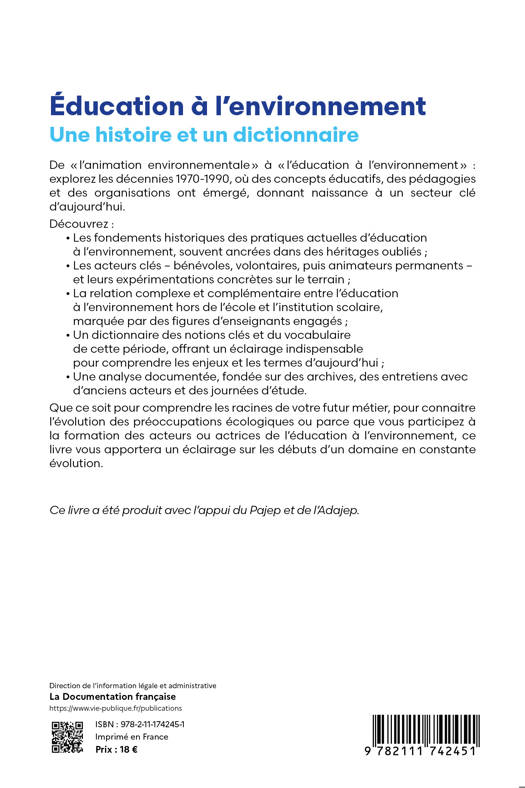 De «l’animation environnementale» à «l’éducation à l’environnement» : explorez les décennies 1970-1990, où des concepts éducatifs, des pédagogies et des organisations ont émergé, donnant naissance à un secteur clé d’aujourd’hui. •Les fondements historiques des pratiques actuelles d'éducation à l'environnement •Les acteurs clés – bénévoles, volontaires, puis animateurs permanents – et leurs expérimentations concrètes sur le terrain •La relation complexe et complémentaire entre l'éducation à l'environnement hors de l'école et l'institution scolaire, marquée par des figures d'enseignants engagés •Un dictionnaire des notions et acteurs clés et du vocabulaire de cette période, offrant un éclairage indispensable pour comprendre les enjeux et les termes d’aujourd’hui •Une analyse documentée, fondée sur des archives, des entretiens avec d'anciens acteurs et des journées d'étude. Ce livre vous apportera un éclairage sur les débuts d’un domaine en constante évolution.