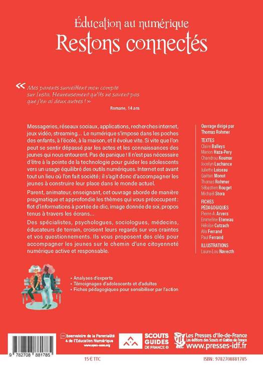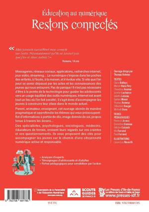 Messageries, réseaux sociaux, recherches internet, streaming, jeux vidéo, applications, médias... Le numérique est aujourd'hui omniprésent. Il se décline sur différents supports, a plusieurs usages, et évolue vite. Si vite, que les adultes se sentent parfois dépassés. Pas de panique, il n'est pas nécessaire d'être toujours à la pointe de la technologie pour guider les enfants à un usage équilibré des outils numériques. La principale fonction d'internet et de ses multiples avatars est de mettre en relation un individu avec une communauté , il ne représente après tout qu'un lieu où l'on fait société, et peut donc être traité en tant que tel dans l'éducation. Parent, grand-parent, professeur, animateur, frère, sÅur, cet ouvrage est là pour vous accompagner dans l'éducation au numérique des jeunes que vous encadrez, avides de nouveaux défis et d'exploration. Il aborde les thèmes qui vous préoccupent : image donnée de soi, propos tenus sur un clavier, flot d'informations à portée de clic... Tout cela dans une optique d'acquisition de compétences - car le web est un outil formidable qui, s'il est bien utilisé, peut permettre à chacun de s'épanouir. Des spécialistes, psychologues, sociologues, médecins, éducateurs de terrain croisent ici leurs regards sur vos craintes et vos questionnements, et décryptent ce que veulent dire des comportements qui peuvent vous être étrangers. Des adolescents prendront aussi la parole pour exprimer leur vision. Enfin, des exemples et des activités pratiques ponctuent ces pages, afin de vous permettre de sensibiliser et de former par l'action et la mise en situation. Vous trouverez ici des clés pour accompagner les jeunes sur le chemin d'une citoyenneté numérique active, responsable et heureuse.