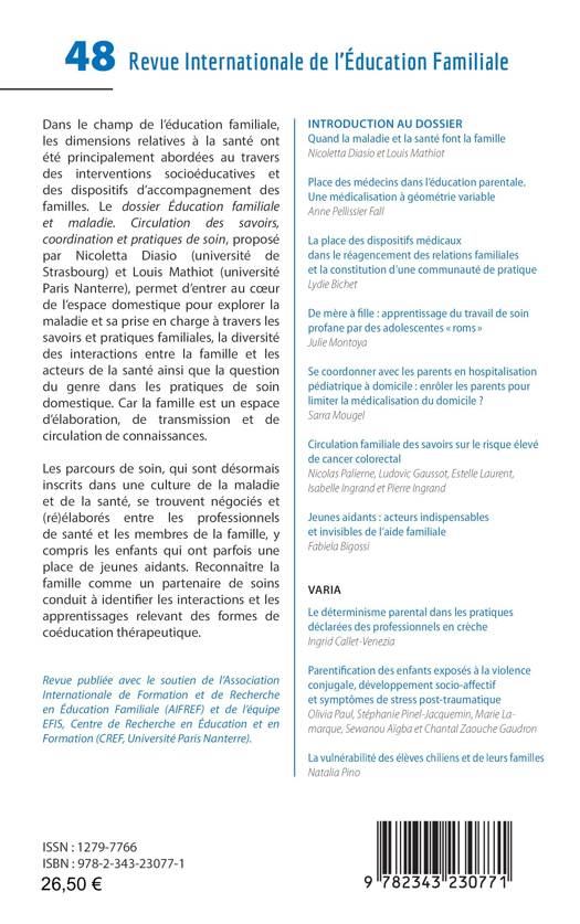 Dans le champ de l’éducation familiale, les dimensions relatives à la santé ont été principalement abordées au travers des interventions socioéducatives et des dispositifs d’accompagnement des familles. Le dossier Éducation familiale et maladie. Circulation des savoirs, coordination et pratiques de soin, permet d’entrer au coeur de l’espace domestique pour explorer la maladie et sa prise en charge à travers les savoirs et pratiques familiales, la diversité des interactions entre la famille et les acteurs de la santé ainsi que la question du genre dans les pratiques de soin domestique. Reconnaître la famille comme un partenaire de soins conduit à identifier les interactions et les apprentissages relevant des formes de coéducation thérapeutique.