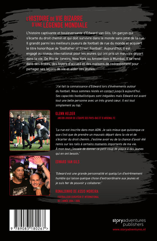 L'HISTOIRE DE VIE BIZARRE D'UNE LÉGENDE MONDIALE L'histoire captivante et bouleversante d'Edward van Gils. Un garçon qui s'écarte du droit chemin et qui doit survivre dans le monde sans pitié de la rue. Il grandit parmi les meilleurs joueurs de football de rue du monde et acquiert le titre honorifique de « Godfather of Street Football ». Aujourd'hui, il est engagé au niveau international pour les jeunes qui ont pris un mauvais départ dans la vie. De Rio de Janeiro, New York ou Amsterdam à Mumbai, il se rend dans des écoles, des foyers d'accueil et des maisons de redressement pour partager ses leçons de vie et aider ces jeunes.