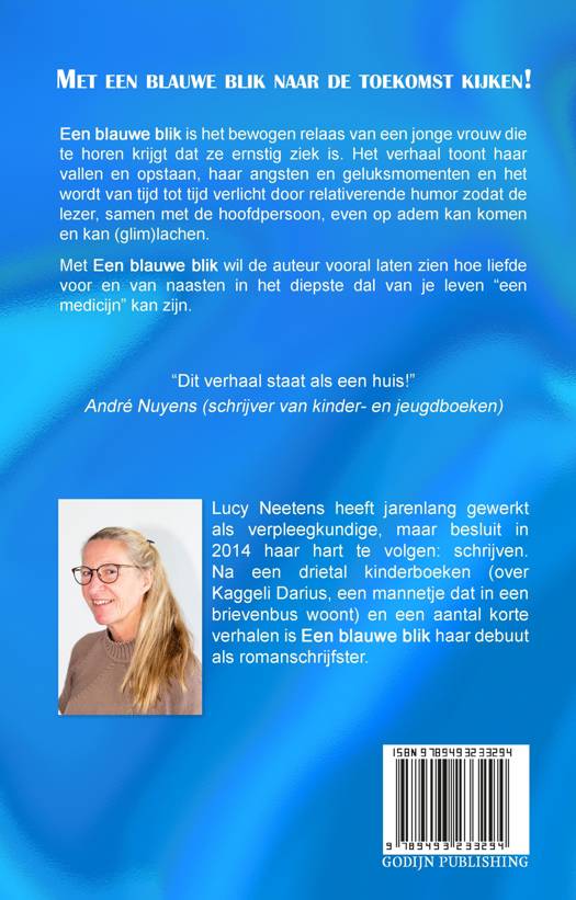 Met Een blauwe blik wil de auteur vooral laten zien hoe liefde voor en van naasten in het diepste dal van je leven “een medicijn” kan zijn.