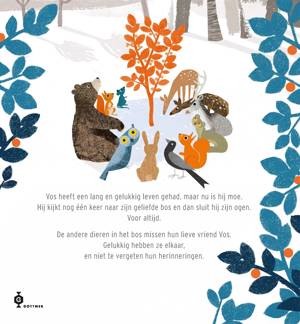 De andere dieren in het bos missen hun vriend en komen bij elkaar om mooie herinneringen aan Vos op te halen. Zonder dat ze het doorhebben, begint er een klein plantje te groeien op de plek waar Vos onder de sneeuw ligt. Bij elke herinnering wordt het plantje groter en mooier, tot er een enorme boom midden in het bos staat. Een boom vol herinneringen aan Vos.