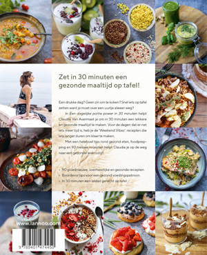 In Een dagelijke portie power in 30 minuten helpt Claudia Van Avermaet je om in 30 minuten een lekkere en gezonde maaltijd te maken. Voor de dagen dat er net iets meer tijd is, heb je de 'Weekend Vibes': recepten die iets langer duren om klaar te maken.