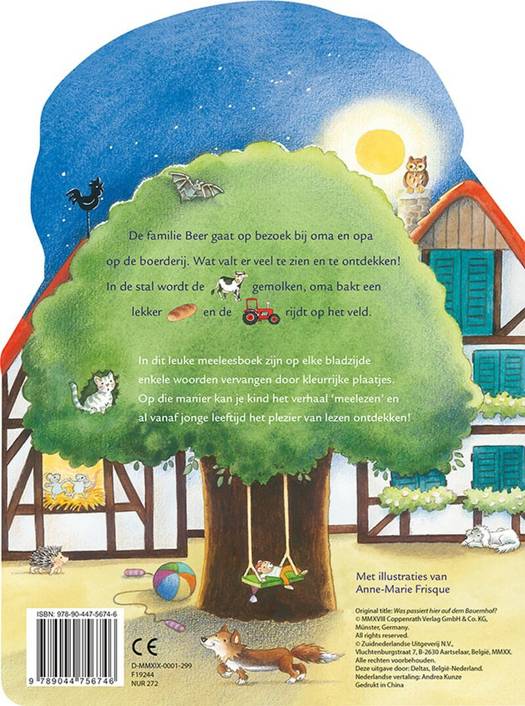 De familie Beer gaat op bezoek bij oma en opa op de boerderij. Wat valt er veel te zien en te ontdekken! In de stal wordt de koe gemolken, oma bakt een lekker brood en de tractor rijdt op het veld. In dit leuke meeleesboek zijn op elke bladzijde enkele woorden vervangen door kleurrijke plaatjes. Op die manier kan je kind het verhaal 'meelezen' en al vanaf jonge leeftijd het plezier van lezen ontdekken! Geschikt voor kinderen vanaf 3 jaar
