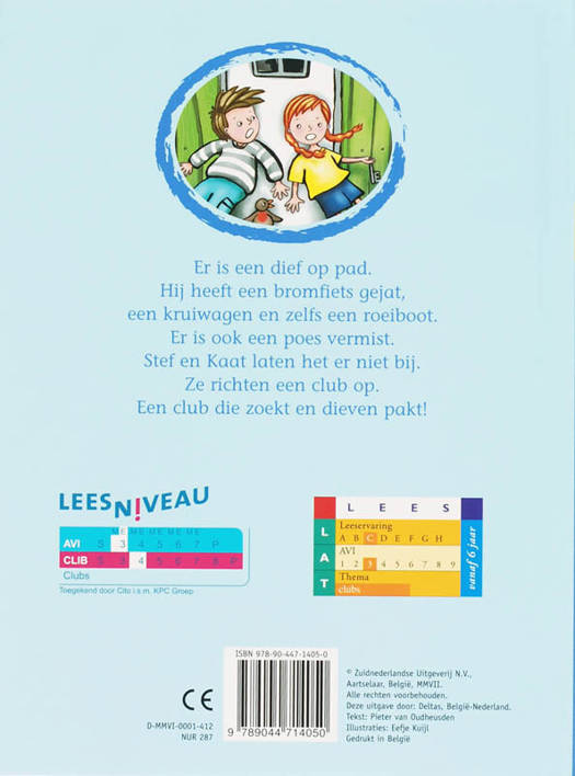 Er is een dief op pad. Hij heeft een bromfiets gejat, een kruiwagen en zelfs een roeiboot. Er is ook een poes vermist. Stef en Kaat laten het er niet bij. Ze richten een club op. Een club die zoekt en dieven pakt!