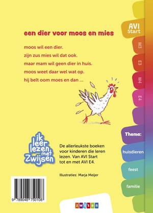 Moos en Mies zijn bijna jarig en willen allebei een dier voor hun verjaardag. Maar dat wil mama echt niet cadeau geven! Dan staat hun oom voor de deur met een mooi cadeau, en er komt nog meer bezoek met mooie cadeaus … Een verjaardag vol verrassingen! Heerlijk verhaal voor beginnende lezers op AVI Start.