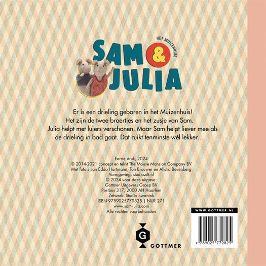 Het prentenboek 'Een drieling' van Het Muizenhuis is er nu in een uitvoering gemaakt van stevig karton - handig voor grijpgrage peuterhandjes van de jongste lezers. Ga mee op reis door de charmante kamers en gangen van deze met de hand gemaakte muizenwereld met Sam, Julia en al hun vrienden en familie. Bij Sam thuis is een drieling geboren. Sam heeft er twee broertjes en een zusje bij gekregen. Wat zijn ze toch klein en schattig! Julia gaat op bezoek en samen helpen ze met de verzorging van de baby's. En ja, daar hoort ook het verschonen van de luiers bij.