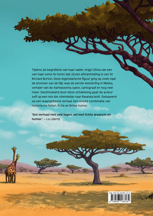 Tijdens de begrafenis van haar vader, krijgt Olivia van een van haar ooms te horen dat zij een afstammeling is van Sir Richard Burton. Deze legendarische figuur was een van de ontdekkers van de bronnen van de Nijl, de eerste westerling in Mekka, vertaler van de Kama Sutra, spion, cartograaf en nog veel meer. Gestimuleerd door deze ontdekking gaat de auteur zelf op een reis die uiteindelijk naar Rwanda leidt. Gebaseerd op een waargebeurd verhaal. Een unieke combinatie van historische fictie en Britse humor. ‘Een verhaal met vele lagen, vol met lichte waanzin en humor.’ – La Liberté