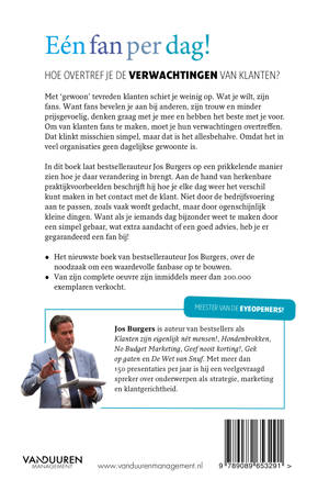 Met 'gewoon' tevreden klanten schiet je weinig op. Wat je wilt, zijn fans. Want fans bevelen je aan bij anderen, zijn trouw en minder prijsgevoelig, denken graag met je mee en hebben het beste met je voor. Om van klanten fans te maken, moet je hun verwachtingen overtreffen. Dat klinkt misschien simpel, maar dat is het allesbehalve. Omdat het in veel organisaties geen dagelijkse gewoonte is. In dit boek laat bestsellerauteur Jos Burgers op een prikkelende manier zien hoe je daar verandering in brengt. Aan de hand van herkenbare praktijkvoorbeelden beschrijft hij hoe je elke dag weer het verschil kunt maken in het contact met de klant. Niet door de bedrijfsvoering aan te passen, zoals vaak wordt gedacht, maar door ogenschijnlijk kleine dingen. Want als je iemands dag bijzonder weet te maken door een simpel gebaar, wat extra aandacht of een goed advies, heb je er gegarandeerd een fan bij!
