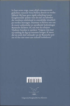 Vera Pavlova (Moskou, 1963) was leerlinge aan het Schnittke Muziekcollege, zong in een kerkkoor, studeerde af als muziekhistorica en brak drie jaar later door met onthullende gedichten die menig lezer met verdrongen herinneringen, verzwegen ervaringen en latente verlangens confronteerden. Pavlova blijft het liefst uit de schijnwerpers. Om met haar eigen woorden te spreken: