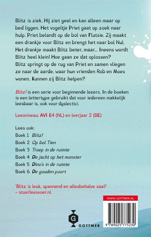De AVI-boeken over het ruimtewezen Blitz van Rian Visser en Lars Deltrap zijn buitenaards populair bij beginnende en dyslectische lezers vanaf 6 jaar. 'Blitz! Een gek drankje' is het zevende deel in de serie.