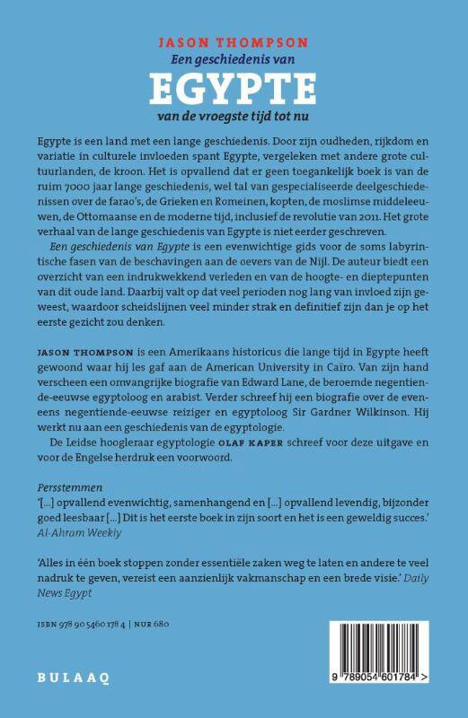 Een geschiedenis van Egypte is een evenwichtige gids voor de soms labyrintische fasen van de beschavingen aan de oevers van de Nijl. De auteur biedt een overzicht van een indrukwekkend verleden en van de hoogte- en dieptepunten van dit oude land. Daarbij valt op dat veel perioden nog lang van invloed zijn geweest, waardoor scheidslijnen veel minder strak en definitief zijn dan je op het eerste gezicht zou denken.