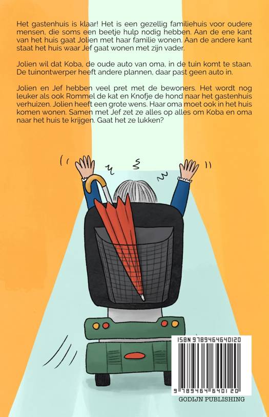 Het gastenhuis is klaar! Het is een gezellig familiehuis voor oudere mensen, die soms een beetje hulp nodig hebben. Aan de ene kant van het huis gaat Jolien met haar familie wonen. Aan de andere kant staat het huis waar Jef gaat wonen met zijn vader. Jolien wil dat Koba, de oude auto van oma, in de tuin komt te staan. De tuinontwerper heeft andere plannen, daar past geen auto in. Jolien en Jef hebben veel pret met de bewoners. Het wordt nog leuker als ook Rommel de kat en Knofje de hond naar het gastenhuis verhuizen. Jolien heeft een grote wens. Haar oma moet ook in het huis komen wonen. Samen met Jef zet ze alles op alles om Koba en oma naar het huis te krijgen. Gaat het ze lukken?