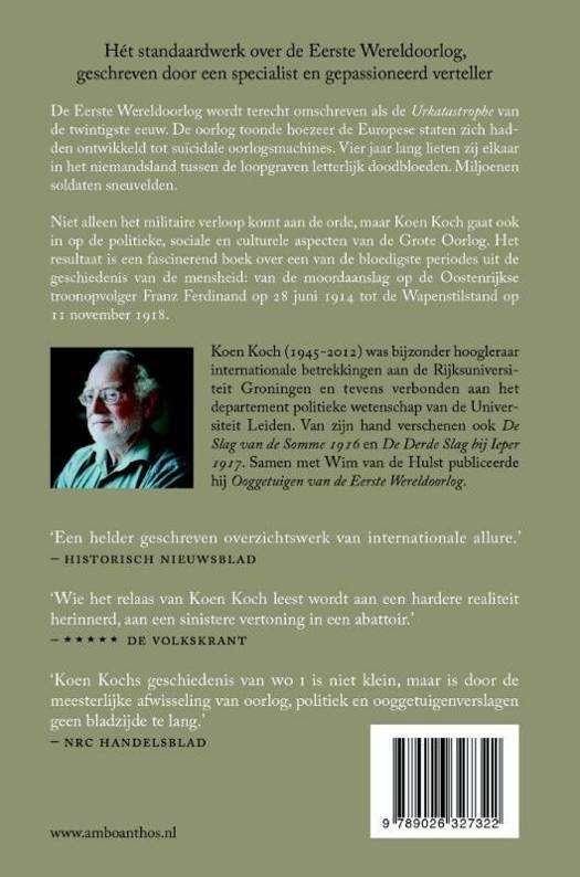 Koen Koch gaat in op het militaire verloop en de politieke, sociale en culturele aspecten van de Grote Oorlog. Het resultaat is een fascinerend boek over een van de bloedigste periodes uit de geschiedenis van de mensheid: van de moordaanslag op de Oostenrijkse troonopvolger Frans Ferdinand op 28 juni 1914 tot de Wapenstilstand op 11 november 1918.