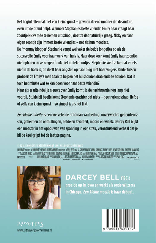 Darcey Bell (1981) groeide op in Iowa en werkt als onderwijzeres in Chicago. Een kleine moeite is haar debuut.
