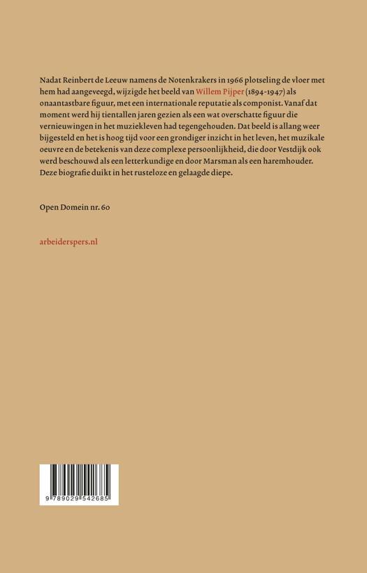 Nadat Reinbert de Leeuw namens de Notenkrakers in 1966 plotseling de vloer met hem had aangeveegd, wijzigde het beeld van Willem Pijper (1894-1947) als onaantastbare figuur met internationale renommée als componist. Vanaf dat moment werd hij decennialang gezien als een overschatte figuur die vernieuwingen in het muziekleven had tegengehouden. Dat beeld is allang weer bijgesteld en het is hoog tijd voor een grondiger inzicht in het leven van deze complexe persoonlijkheid, die door Vestdijk ook werd beschouwd als een letterkundige en door Marsman als een haremhouder. Deze biografie duikt in het diepe.