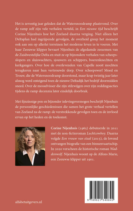 In februari 2023 is het zeventig jaar geleden dat de Watersnoodramp plaatsvond. Over de ramp zelf zijn vele verhalen verteld, in 'Een nieuwe tijd' beschrijft Corine Nijenhuis hoe het Zeeland daarna verging. Een moderne tijd diende zich aan. Niet alleen het Deltaplan had ingrijpende gevolgen, de overheid greep het moment ook aan om op allerlei terreinen het moderne leven in te voeren. Nijenhuis stuit op bijzondere verhalen van scheepsslopers en sluiswachters, sjouwers en schippers, boerenknechten en kerkgangers. Over hoe de overlevenden van Capelle nooit mochten terugkeren naar hun vertrouwde dorp. Over scheepswerf Moed en Trouw, die de watersnoodramp overleefde, maar krap twintig jaar later alsnog werd onteigend toen de nieuwe Deltadijk het bedrijf doormidden sneed. Over de mosselvisser die zijn stilzwijgen over zijn reddingsacties tijdens de ramp decennia later eindelijk doorbrak. Met fijnzinnige pen en bijzonder inlevingsvermogen beschrijft Nijenhuis de persoonlijke geschiedenissen die samen het grote verhaal vertellen van Zeeland na de ramp. Een belangwekkend en urgent boek dat lezers in Zeeland, maar ook daarbuiten zal aanspreken.