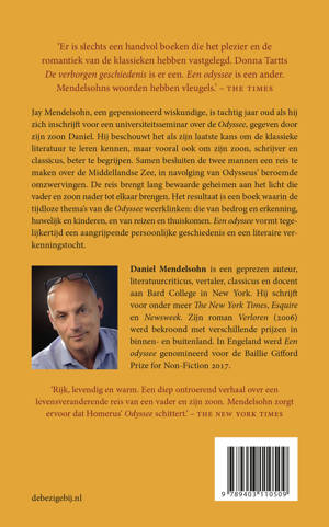 Jay Mendelsohn, een gepensioneerd wiskundige, is tachtig jaar oud als hij besluit zich in te schrijven voor een universiteitsseminar over de Odyssee, gegeven door zijn zoon Daniel. Hij beschouwt het als zijn laatste kans om de klassieke literatuur, verwaarloosd in zijn jeugd, te leren kennen, maar vooral ook om zijn zoon, schrijver en classicus, beter te begrijpen. Samen besluiten de twee mannen een reis te maken over de Middellandse Zee, in navolging van Odysseus’ beroemde omzwervingen. De reis brengt lang bewaarde geheimen aan het licht die Daniel helpen zijn vader eindelijk beter te leren kennen. Het resultaat is een boek waarin de tijdloze thema’s van de Odyssee zelf weerklinken: die van bedrog en erkenning, huwelijk en kinderen, en van reizen en thuiskomen. Een odyssee vormt tegelijkertijd een aangrijpende persoonlijke geschiedenis en een literaire verkenningstocht.