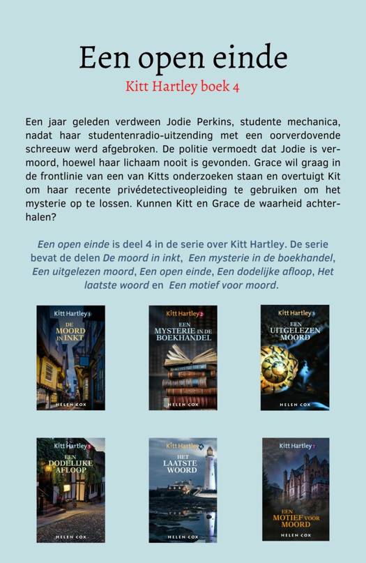 Deel 4 in de Kitt Hartley-serie. Een jaar geleden verdween Jodie Perkins, studente mechanica, nadat haar studentenradio-uitzending met een oorverdovende schreeuw werd afgebroken. De politie vermoedt dat Jodie is vermoord, hoewel haar lichaam nooit is gevonden. Grace wil graag in de frontlinie van een van Kitts onderzoeken staan en overtuigt Kit om haar recente privédetectiveopleiding te gebruiken om het mysterie op te lossen. Kunnen Kitt en Grace de waarheid achterhalen?