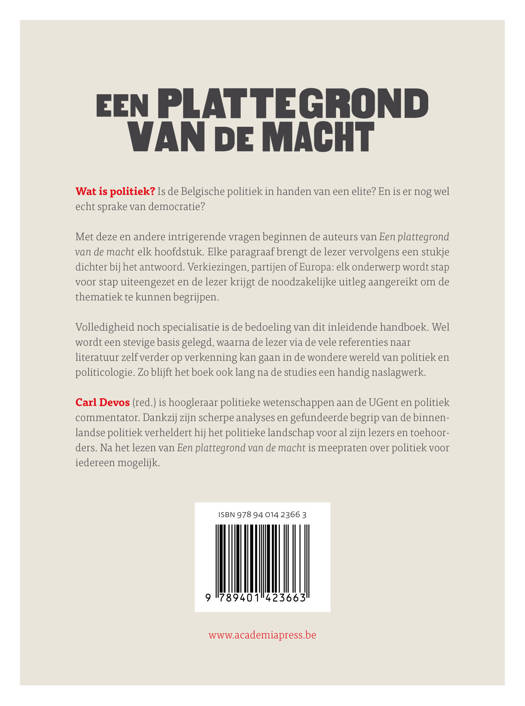 Met deze en andere intrigerende vragen beginnen de auteurs van Een plattegrond van de macht elk hoofdstuk. Elke paragraaf brengt de lezer vervolgens een stukje dichter bij het antwoord. Verkiezingen, partijen of Europa: elk onderwerp wordt stap voor stap uiteengezet en de lezer krijgt de noodzakelijke uitleg aangereikt om de thematiek te kunnen begrijpen.