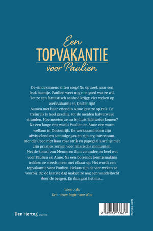De eindexamens zitten erop! Nu op zoek naar een leuk baantje. Paulien weet nog niet goed wat ze wil. Tot ze een fantastisch aanbod krijgt: vier weken op werkvakantie in Oostenrijk! Samen met haar vriendin Anne gaat ze op reis. De treinreis is heel gezellig, tot de meiden halverwege stranden. Hoe moeten ze nu bij huis Edelweiss komen? Na een lange reis wacht Paulien en Anne een warm welkom in Oostenrijk. De werkzaamheden zijn afwisselend en sommige gasten zijn erg interessant. Hondje Coco met haar roze strik en papegaai Kareltje met zijn praatjes zorgen voor hilarische momenten. Met de komst van Menno en Sam verandert er heel wat voor Paulien en Anne. Na een botsende kennismaking trekken ze steeds meer met elkaar op. Het wordt een topvakantie voor Paulien. Helaas zijn de vier weken zo voorbij. Op de laatste dag maken ze nog een wandeltocht door de bergen. En dan gaat het mis...