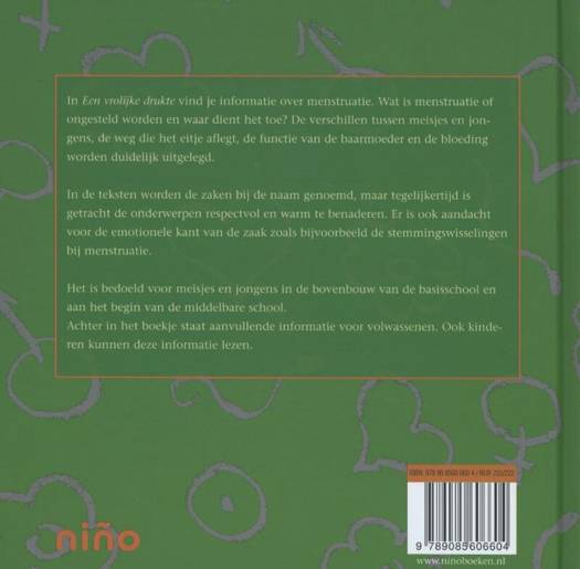 In dit boekje vind je informatie over menstruatie. Wat is menstruatie of ongesteld worden en waar dient het toe? De verschillen tussen meisjes en jongens, de weg die het eitje aflegt, de functie van de baarmoeder en de bloeding worden duidelijk uitgelegd. In de teksten worden de zaken bij de naam genoemd, maar tegelijkertijd is getracht de onderwerpen respectvol en warm te benaderen. Er is ook aandacht voor de emotionele kant van de zaak zoals bijvoorbeeld de stemmingswisselingen bij menstruatie. Het is bedoeld voor meisjes en jongens in de bovenbouw van de basisschool en aan het begin van de middelbare school. Achter in het boekje staat aanvullende informatie voor volwassenen. Ook kinderen kunnen deze informatie lezen. Met illustraties van Sjeng Schupp Vanaf 10 jaar