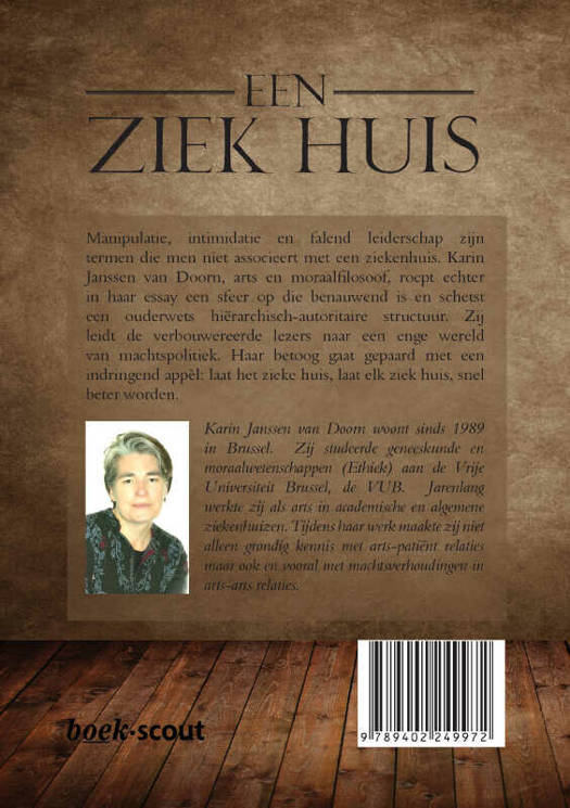 Manipulatie, intimidatie en falend leiderschap zijn termen die men niet associeert met een ziekenhuis. Karin Janssen van Doorn, arts en moraalfilosoof, roept echter in haar essay een sfeer op die benauwend is en schetst een ouderwets hiërarchisch-autoritaire structuur. Zij leidt de verbouwereerde lezers naar een enge wereld van machtspolitiek. Haar betoog gaat gepaard met een indringend appèl: laat het zieke huis, laat elk ziek huis, snel beter worden.