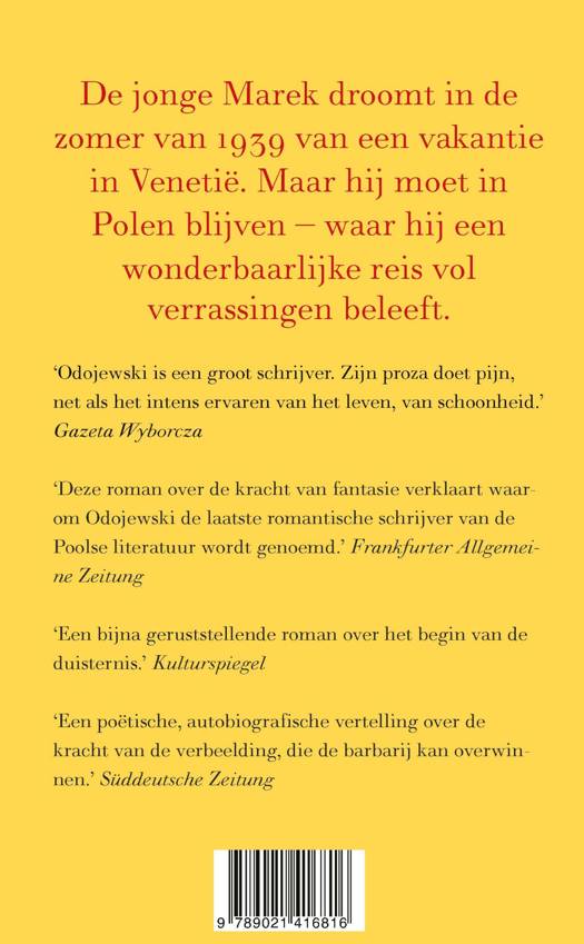 Zijn lievelingstante Barbara gaat meteen met dit idee aan de slag. Stoelen worden bruggen, de pingpongtafel wordt het San Marcoplein. En terwijl buiten uit de blauwe lucht de eerste bommen vallen, beleeft Marek onder de lampionnen in de verduisterde kelder een reis die het echte Venetië ver overtreft.