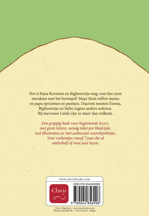 Het is bijna Kerstmis en Bighoorntje mag voor het eerst meedoen met het kerstspel! Maar thuis willen mama en papa opruimen en poetsen. Daarom moeten Emma, Bighoorntje en Siebe ergens anders oefenen. Bij mevrouw Linde zijn ze meer dan welkom.