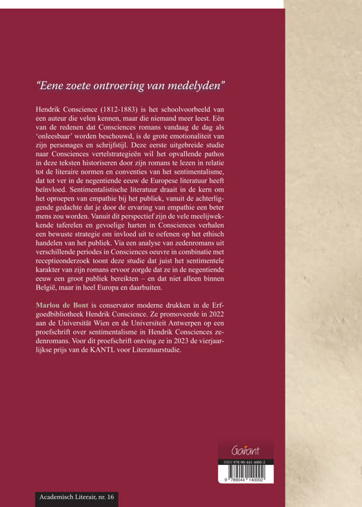 Hendrik Conscience (1812-1883) is het schoolvoorbeeld van een auteur die velen kennen, maar die niemand meer leest. Eén van de redenen dat Consciences romans vandaag de dag als ‘onleesbaar’ worden beschouwd, is de grote emotionaliteit van zijn personages en schrijfstijl. Deze eerste uitgebreide studie naar Consciences vertelstrategieën wil het opvallende pathos in deze teksten historiseren door zijn romans te lezen in relatietot de literaire normen en conventies van het sentimentalisme, dat tot ver in de negentiende eeuw de Europese literatuur heeft beïnvloed. Sentimentalistische literatuur draait in de kern om het oproepen van empathie bij het publiek, vanuit de achterliggende gedachte dat je door de ervaring van empathie een beter