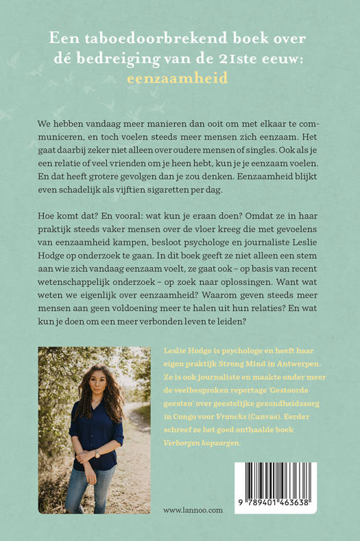 We hebben vandaag meer manieren dan ooit om met elkaar te communiceren, en toch voelen steeds meer mensen zich eenzaam. Het gaat daarbij zeker niet alleen over oudere mensen of singles. Ook als je een relatie of veel vrienden om je heen hebt, kun je je eenzaam voelen. En dat heeft grotere gevolgen dan je zou denken. Eenzaamheid blijkt even schadelijk als vijftien sigaretten per dag. Hoe komt dat? En vooral: wat kun je eraan doen? Omdat ze in haar praktijk steeds vaker mensen over de vloer kreeg die met gevoelens van eenzaamheid kampen, besloot psychologe en journaliste Leslie Hodge op onderzoek te gaan. In dit boek geeft ze niet alleen een stem aan wie zich vandaag eenzaam voelt, ze gaat ook - op basis van recent wetenschappelijk onderzoek - op zoek naar oplossingen. Want wat weten we eigenlijk over eenzaamheid? Waarom geven steeds meer mensen aan geen voldoening meer te halen uit hun relaties? En wat kun je doen om een meer verbonden leven te leiden?