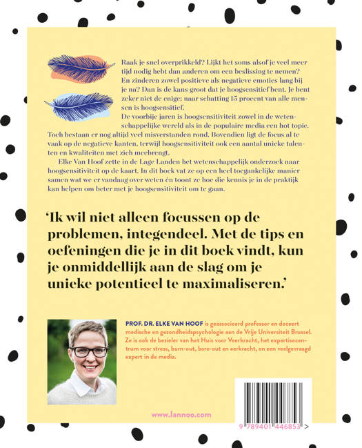 Raak je snel overprikkeld? Lijkt het soms alsof je veel meer tijd nodig hebt dan anderen om een beslissing te nemen? En zinderen zowel positieve als negatieve emoties lang bij je na? Dan is de kans groot dat je hoogsensitief bent. Je bent zeker niet de enige; naar schatting 15 procent van alle mensen is hoogsensitief. De voorbije jaren is hoogsensitiviteit zowel in de wetenschappelijke wereld als in de populaire media een hot topic. Toch bestaan er nog altijd veel misverstanden rond. Bovendien ligt de focus al te vaak op de negatieve kanten, terwijl hoogsensitiviteit ook een aantal unieke talenten en kwaliteiten met zich meebrengt. Elke Van Hoof zette in de Lage Landen het wetenschappelijk onderzoek naar hoogsensitiviteit op de kaart. In dit boek vat ze op een heel toegankelijke manier samen wat we er vandaag over weten én toont ze hoe die kennis je in de praktijk kan helpen om beter met je hoogsensitiviteit om te gaan. 'Ik wil niet alleen focussen op de problemen, integendeel. Met de tips en oefeningen die je in dit boek vindt, kun je onmiddellijk aan de slag om je unieke potentieel te maximaliseren.'