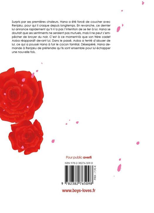 Surpris par ses premières chaleurs, Hana a été forcé de coucher avec Renjaku, pour qui il craque depuis longtemps. En revanche, ce dernier lui annonce rapidement qu'il n'a pas l'intention de se lier à lui. Hana se doutait que ses sentiments ne seraient pas mutuels, mais il ne peut s'empêcher de broyer du noir. C'est à ce moment-là que son frère cadet Aoba réapparaît devant lui. Dans le passé, Aoba a tenté d'abuser de lui, ce qui a poussé Hana à fuir le cocon familial. Désespéré, Hana demande à Renjaku de prétendre qu'ils sont ensemble pour lui échapper une nouvelle fois.