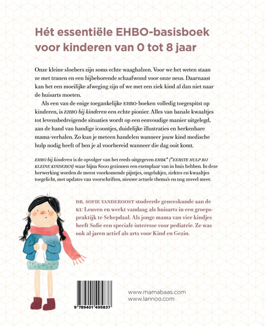 Onze kleine sloebers zijn soms echte waaghalzen. Voor we het weten staan ze met tranen en een bijbehorende schaafwond voor onze neus. Daarnaast kan het een moeilijke afweging zijn of we met een ziek kind al dan niet naar de huisarts moeten. Als een van de enige toegankelijke EHBO-boeken volledig toegespitst op kinderen, is EHBO bij kinderen een echte pionier. Alles van banale kwaaltjes tot levensbedreigende situaties wordt op een eenvoudige manier uitgelegd, aan de hand van handige icoontjes, duidelijke illustraties en herkenbare mama-verhalen. Zo kun je meteen handelen wanneer jouw kind medische hulp nodig heeft of ben je al voorbereid wanneer die dag ooit komt. EHBO bij kinderen is de opvolger van het reeds uitgegeven EHBK* (*Eerste Hulp Bij Kleine Kinderen) waar bijna 8000 gezinnen een exemplaar van in huis hebben. In deze herwerking worden de meest voorkomende pijntjes, ongelukjes, ziektes en kwaaltjes toegelicht, met updates van voorschriften, nieuwe actuele thema's en nog zoveel meer.
