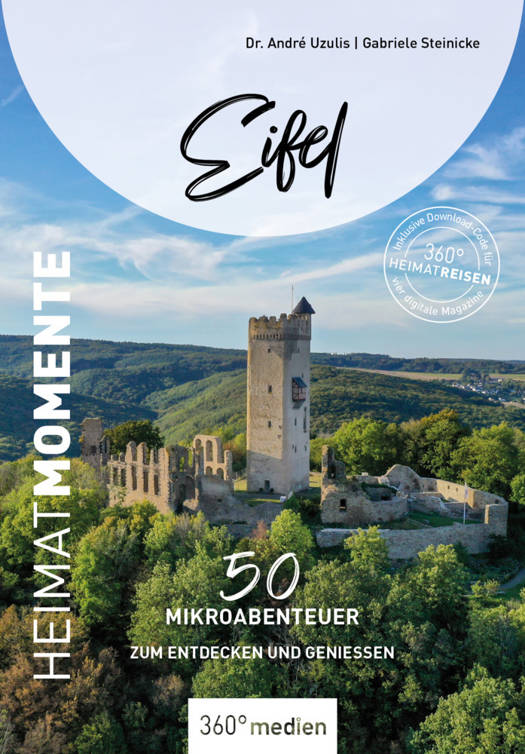 Die Eifel, im tiefen Westen Deutschlands gelegen, ist ein ruhiger und beruhigender Landstrich von großem touristischen Wert. Mit stetig wechselndem Licht, ganz unterschiedlichen Stimmungen, einer ergreifenden Weite und einem großartigen Himmel trägt sie eine ganz eigene Poesie in sich. Offiziell gilt sie als Mittelgebirge, aber ihre Höhen halten sich in Grenzen. Die Eifel ist zumeist eine wellige Hochebene, in die sich allerdings dramatisch tief Bäche in engen Kerbtälern eingeschnitten haben.Maare, Vulkane, bezaubernde Fachwerkstädtchen, monumentale Burgen, eine deftige Küche und große Gastfreundschaft zeichnen die Eifel aus. Überall in der Eifel kann man sie finden, die HeimatMomente, die einen tief berühren. Dabei ist die Eifel alles andere als überlaufen. Vieles harrt noch der Entdeckung.Dieses Buch stellt 50 Ausflüge ganz unterschiedlichen Charakters in der gesamten Eifel vor. Von kulturellen Höhepunkten über landschaftliche Schönheiten, von Geschichte bis Moderne reicht das Spektrum der Empfehlungen. Mancher Geheimtipp dürfte dabei sein, den selbst erfahrene Kenner noch nicht - oder zumindest auf diese Weise noch nicht - kennen.