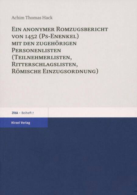 Am 19. März 1452 wurde zum letzten Mal in der Geschichte ein deutscher König (Friedrich III.) von einem Papst (Nikolaus V.) in Rom zum Kaiser gekrönt. Das Aufsehen erregende Ereignis fand bereits in den zeitgenössischen Medien ein ungewöhnlich starkes Echo. Eines der wichtigsten Zeugnisse ist ein deutschsprachiger Romzugsbericht, der in der älteren Literatur irrtümlich dem österreichischen Adligen Kaspar Enenkel zugeschrieben wurde. Dieser Text erscheint hier erstmalig in einer kritischen Edition, der alle greifbaren Handschriften zugrunde gelegt sind. Hinzu kommen insgesamt fünf Personen-Listen, die gemeinsam mit diesem Bericht überliefert sind. Die Edition wird begleitet von Ausführungen zur Textkritik sowie zur historischen und literarischen Einordnung der Texte. Den Abschluss bildet eine Prosopographie aller Teilnehmer am Romzug von 1452.