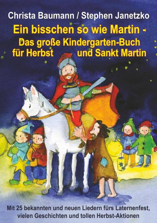 Ein bisschen so wie Martin - Das große Kindergarten-Buch für Herbst und Sankt Martin. Mit 25 bekannten und neuen Liedern fürs Laternenfest, vielen Geschichten und tollen Herbst-Aktionen. Der Höhepunkt des Herbstes ist für Kinder der Martinsumzug. Die Tage sind inzwischen kürzer geworden und schon früh macht sich die Dämmerung breit. Im Garten liegen bunte Herbstblätter, der Wind bläst und nimmt den Drachen mit in die Luft. Jetzt ist die Zeit gekommen, es sich im warmen Zimmer gemütlich zu machen, mit einem Tee und bei Kerzenlicht den Geschichten von St. Martin zu lauschen und Laternenlieder zu singen. Es werden Laternen gebastelt, Rollenspiele probiert und es wird gebacken. Jede Einrichtung hat für diese Zeit und besonders für das Martinsfest ihre eigenen Rituale entwickelt. Manche davon sind unumstößlich, andere könnten verändert werden. Mit neuen Kindern und ihren Familien kommt in jedem Jahr die Herausforderung, diese Rituale zu überdenken und eventuell mit Neuem zu kombinieren. In diesem Buch finden Sie 22 Laternenlieder und drei neue Herbstlieder. Dazu gibt es Geschichten rund ums Teilen, um die Laternen- und Herbstzeit von Elke Bräunling. Außerdem finden Sie viele Ideen zur ganzheitlichen Förderung: - Aktionen in der Einrichtung zum Teilen - verschiedene Versuche - viele Techniken zum Laternenbasteln und andere Kreativideen - Bewegungs- und Darstellungsspiele - Rezepte - Rätsel und Scherzfragen - Bastelideen rund um St. Martin und den Herbst - ein Tischtheater und eine Pantomime mit Orchesterbegleitung - Tipps für den Laternenumzug und für den Umgang mit einem Pferd beim Martinsspiel - und ein Memory zum Ausmalen. Lassen Sie sich überraschen! Alle im Buch enthaltenen Lieder: 1. Ein bisschen so wie Martin 2. Sankt Martin ritt durch Schnee und Wind 3. Ich schenk dir einen Stern 4. Teilen, teilen 5. Martin, lieber Martin - wir wollen sein wie du 6. Teilen wie Sankt Martin (Sonne, Mond und Sterne) 7. Heute ist Sankt Martinstag 8. Laterne (Laterne, Laterne, komm leuchte für mich) 9. Wenn wir mit den Laternen gehn (Lied zum Laternenfest) 10. Laternenlicht, Laternenlicht 11. Eine Laterne basteln wir 12. Laternen leuchten hell 13. Brenn, Laterne 14. Das Licht geht auf die Reise 15. Martins Mantel 16. Sankt Martin ist da! 17. Wir tragen die Laternen, so bunt 18. Ich geh mit meiner Laterne 19. Sankt Martin 20. Dreh dich, Laterne (Laternen-Tanz) 21. Wie Martin 22. Laterne, Laterne, Sonne, Mond und Sterne 23. Bunte Blätter (Herbstlied) 24. Die Herbstzeit ist da 25. Der Herbst ist da! (1-2-3)