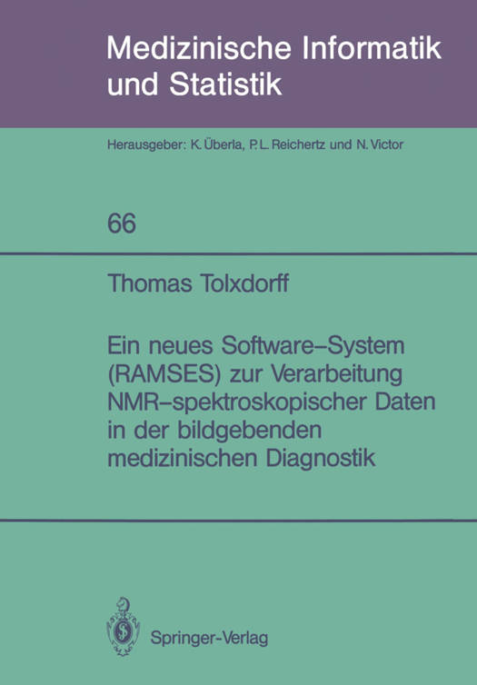 In der vorliegenden Arbeit solI die NMR-Spektroskopie als Anwen dung analysiert und beschrieben werden, mit dem Ziel, ein System zu schaffen, das NMR-spektroskopische Daten verarbeitet und diese in der medizinischen Diagnostik verwertbar macht. Die Arbeit solI einen Bei trag leisten, die Medizinische Diagnosefindung durch ein Verfahren zu erleichtern, das auf der Methode der kernmagnetischen Resonanz (Nuclear Magnetic Resonance, NMR) beruht. Ein kUrzlich an der RWTH Aachen ent wickeltes MeBverfahren [GERSONDE, FELSBERG, TOLXDORFF, RATZEL, STROBEL 1984, GERSONDE, FELSBERG, TOLXDORFF 1985, TOLXDORFF 1985], das eine Kombination aus Kernspinresonanz-Spektroskopie und Kernspinresonanz-To mographie ist, bildet dazu den Ausgangspunkt. Eine Analyse der Struktur der dabei anfallenden Daten zeigte, daB eine einfache Darstellung a1s Bild, wie es etwa bei Rontgen-Compu tertomogrammen Ublich ist, nicht ausreicht. FUr jeden Bildpunkt oder das entsprechende Volumenelement liegt namlich nicht nur eine GroB- etwa die Rontgenabsorption y - vor, sondern eine Anzahl von Funktionen fi der zeit, die eine Antwort auf statische und Uberlagerte hochfre quente Magnetfelder darstellen. Sie erlauben RUckschlUsse auf die mo lekulare zusammensetzung des Volumenelementes. Welcher Funktionswert oder welches Funktional zur Bilderzeugung ausgewahlt wird, hangt von der Zielsetzung abo Hier handelt es sich um medizinische Anwendungen mit der Zielsetzung einer durch Bildverarbeitung computerunterstUtzten Diagnosefindung."