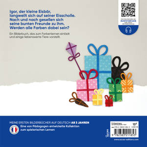 Igor, der kleine Eisbär, langweilt sich auf seiner Eisscholle. Nach und nach gesellen sich seine bunten Freunde zu ihm. Werden alle Farben dabei sein ?