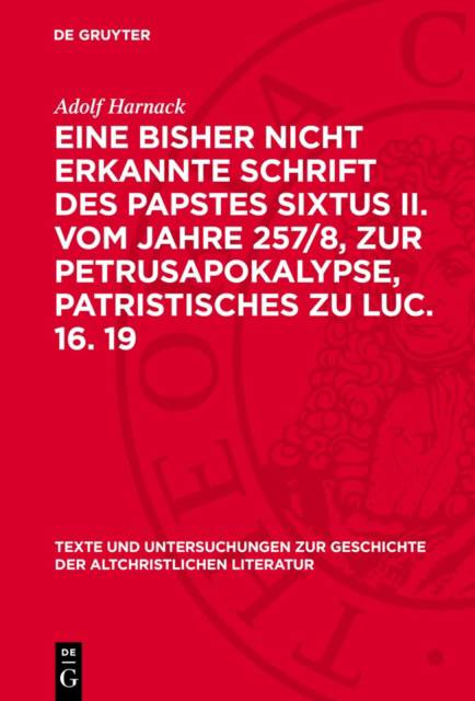 Keine ausführliche Beschreibung für "Eine bisher nicht erkannte Schrift des Papstes Sixtus II. vom Jahre 257/8, zur Petrusapokalypse, Patristisches zu Luc. 16. 19" verfügbar.