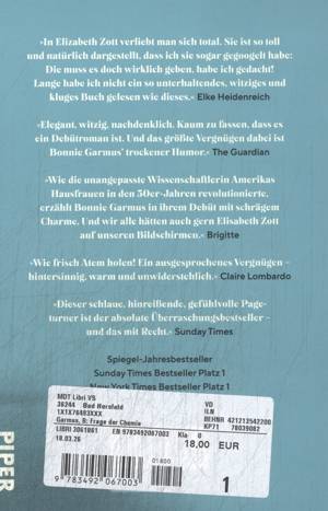 Elizabeth Zott ist eine Frau mit dem unverkennbaren Auftreten eines Menschen, der nicht durchschnittlich ist und es nie sein wird. Doch es ist 1961, und die Frauen tragen Hemdblusenkleider und treten Gartenvereinen bei. Niemand traut ihnen zu, Chemikerin zu werden. Außer Calvin Evans, dem einsamen, brillanten Nobelpreiskandidaten, der sich ausgerechnet in Elizabeths Verstand verliebt. Aber auch 1961 geht das Leben eigene Wege. Und so findet sich eine alleinerziehende Elizabeth Zott bald in der TV-Show »Essen um sechs« wieder. Doch für sie ist Kochen Chemie. Und Chemie bedeutet Veränderung der Zustände ...
