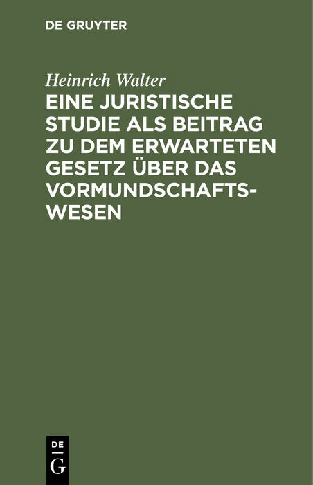 Eine Juristische Studie ALS Beitrag Zu Dem Erwarteten Gesetz Über Das Vormundschaftswesen