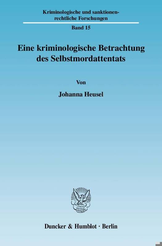 In einem phänomenologischen Teil gibt Johanna Heusel einen Überblick über die »Eckdaten« der Täter, den Ablauf eines Attentats und die Organisationen, die Selbstmordattentate einsetzen. Darüber hinaus untersucht sie die Verwandtschaft von Amoklauf und Selbstmordattentat und trägt dem »selbstvernichtenden« Aspekt des Selbstmordattentats Rechnung. Beispielhaft stellt sie zwei Organisationen vor, die Selbstmordattentate einsetzen. Die Autorin arbeitet eine Typologie von Selbstmordattentaten heraus. Anschließend bezieht sie makro- und mikrokriminologische Kriminalitätstheorien in ihre Untersuchung ein, analysiert Teilaspekte eines Attentats und kann diese sowohl auf der systemischen als auch auf der individuellen Ebene einordnen. Interviews, entstanden im Rahmen einer Forschungsreise der Autorin ins Westjordanland mit fünf Familien von Attentätern, stehen im Mittelpunkt des dritten Teils.