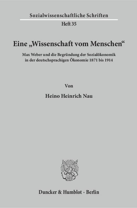 Die vorliegende Arbeit ist eine Diskursgeschichte der deutschsprachigen Ökonomie in der Zeit von 1871 bis 1914, in der anhand der Entwicklung des Konzepts der Sozialökonomik verschiedene, miteinander konfligierende Grundauffassungen ökonomischen Denkens in diesem Zeitraum dargestellt werden. Der Obertitel, "Eine 'Wissenschaft vom Menschen'", ist ein wörtliches Zitat aus der gedruckten Antrittsvorlesung Max Webers von 1895, mit dem er die Volkswirtschaftslehre seiner Zeit zu charakterisieren suchte. Dieser Titel dient gleichsam als Chiffre für den fundamentalen Wandel des Menschenbildes in der Ökonomie, wie er sich in jenem Zeitraum abzuzeichnen begann.