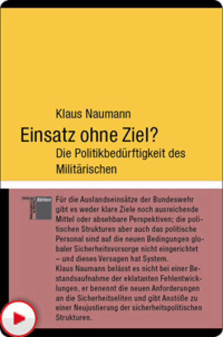 Klaus Naumann belässt es nicht bei einer Bestandsaufnahme der eklatanten Fehlentwicklungen, er benennt die neuen Anforderungen an die Sicherheitseliten und gibt Anstöße zu einer Neujustierung der sicherheitspolitischen Strukturen.