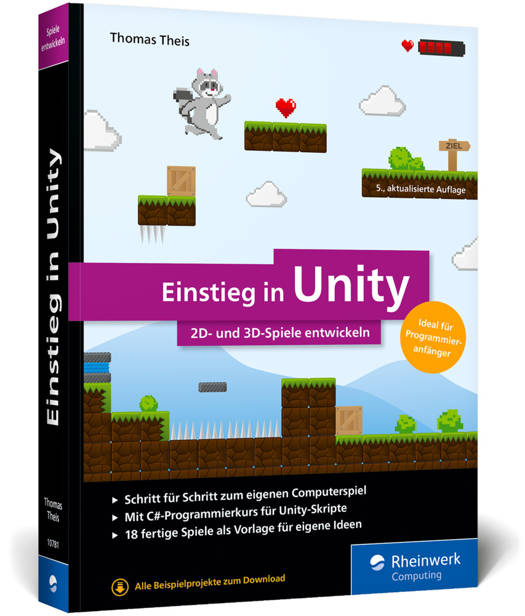 Nutzen Sie die geniale Game Engine Unity, um eigene Spiele zu entwickeln! Erfolgsautor Thomas Theis zeigt Ihnen Schritt für Schritt, wie es geht - von der ersten Scene bis zum komplexen Multiplayer-Spiel. Mit dem integrierten C#-Kurs lernen Sie ohne Vorkenntnisse und ohne externe Software alle Objekte und Befehle direkt so kennen, wie Sie in Unity-Skripten aussehen. Unity bietet eine Fülle von Techniken und Effekten, die Sie nur einzubinden brauchen. Ob es um Zusammenstöße, Flugkurven, Explosionen oder die Kameraperspektive geht: Lernen Sie erst mit 2D- und dann mit 3D-Spielen, die mächtigen Werkzeuge zu nutzen und Ihre eigenen Ideen umzusetzen. Mit 18 vollständigen Spieleprojekten aus vielen Genres.