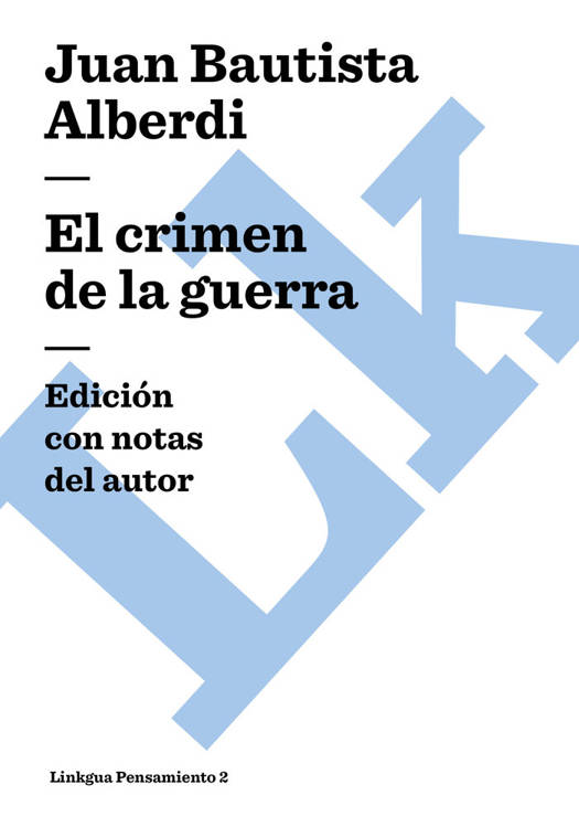 Juan Bautista Alberdi escribió El crimen de la guerra en 1872, bajo la profunda impresión que le produjo la derrota paraguaya en la llamada Guerra del Paraguay y sus secuelas en la población de dicho país.