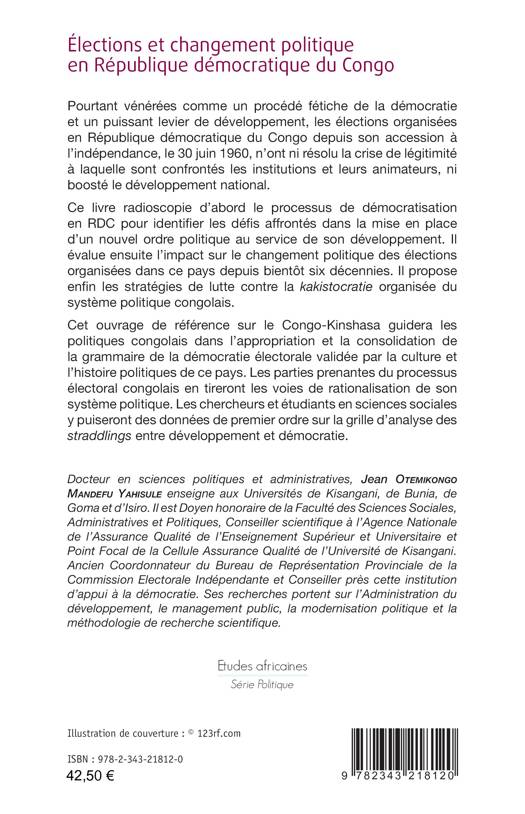Ce livre radioscopie d’abord le processus de démocratisation en RDC pour identifier les défis affrontés dans la mise en place d’un nouvel ordre politique au service de son développement. Il évalue ensuite l’impact sur le changement politique des élections organisées dans ce pays depuis bientôt six décennies. Il propose enfin les stratégies de lutte contre la kakistocratie organisée du système politique congolais. Cet ouvrage guidera les politiques congolais dans l’appropriation et la consolidation de la grammaire de la démocratie électorale validée par la culture et l’histoire politiques de ce pays.